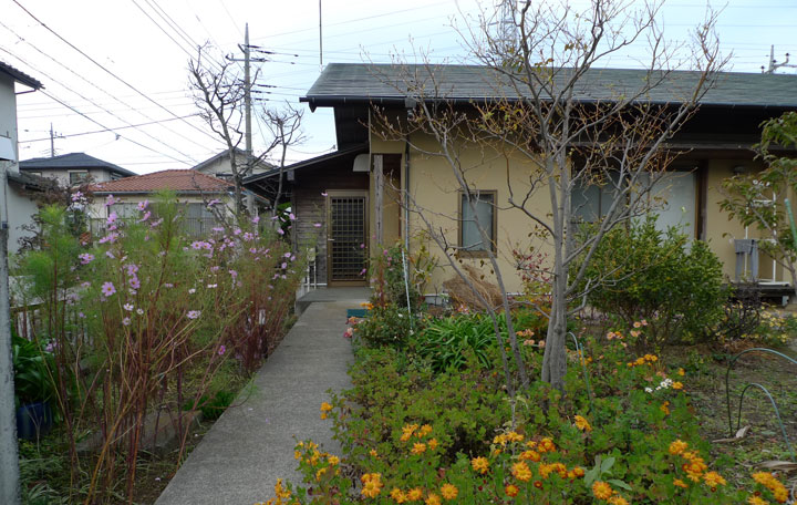 アプローチには花が咲き、自然な雰囲気の庭になっています。