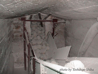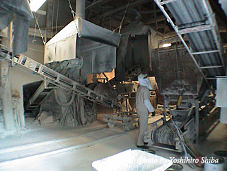 高低差のある場所に設けてあるのは意味があり、上から投入された石灰石が3日間焼かれて下から取り出されます。